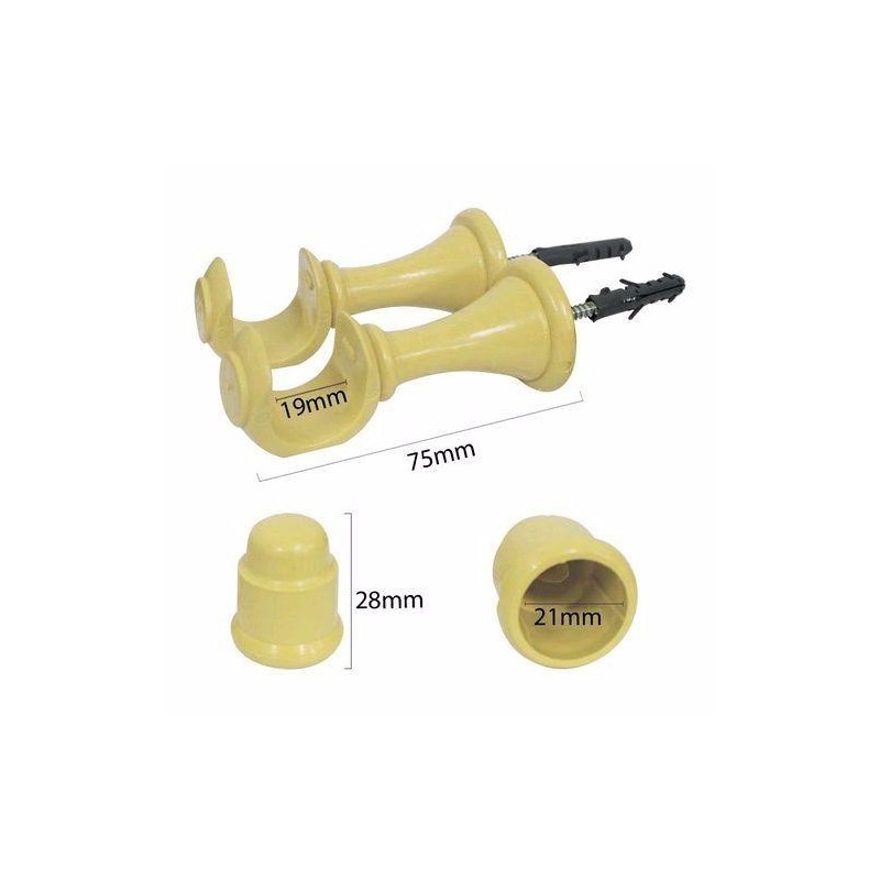 Suporte Cortina Varao Simples 19mm 2 Un C/ Ponteira Marfim