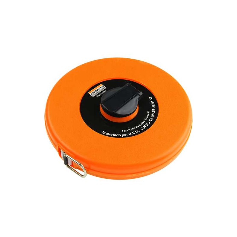 Trena de fibra de vidro com caixa fabricada com plástico ABS laranja resistente a altos impactos e alta visibilidade. Tambor com rebobinamento rápido.