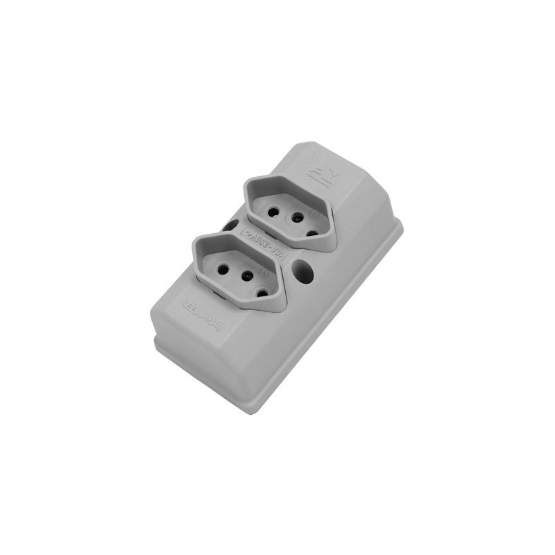 Tomada Barra Dupla FX Cinza - Interneed Cor Cinza / 20A / 250V / 2P+terra Serve também para tomada de 10A; Tomada padrão novo ABNT